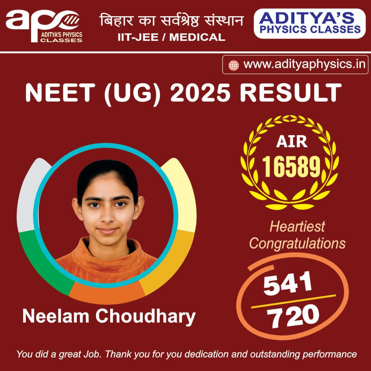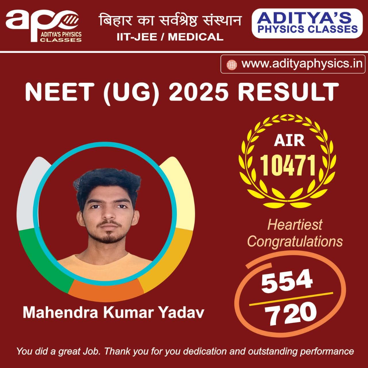 One of the.... Best and excellent.... YOUNG AND ENERGETIC Physics Teacher....in patna.... Today I am going to be a doctor.... Only due to my favourite teacher.... Aditya sir I have remembered... All the lectures and motivational speech of Sir.... I really love you sir.... All the best..... And also wishing you for more bright future.... Of our institute.... ADITYA PHYSICS CLASSES....